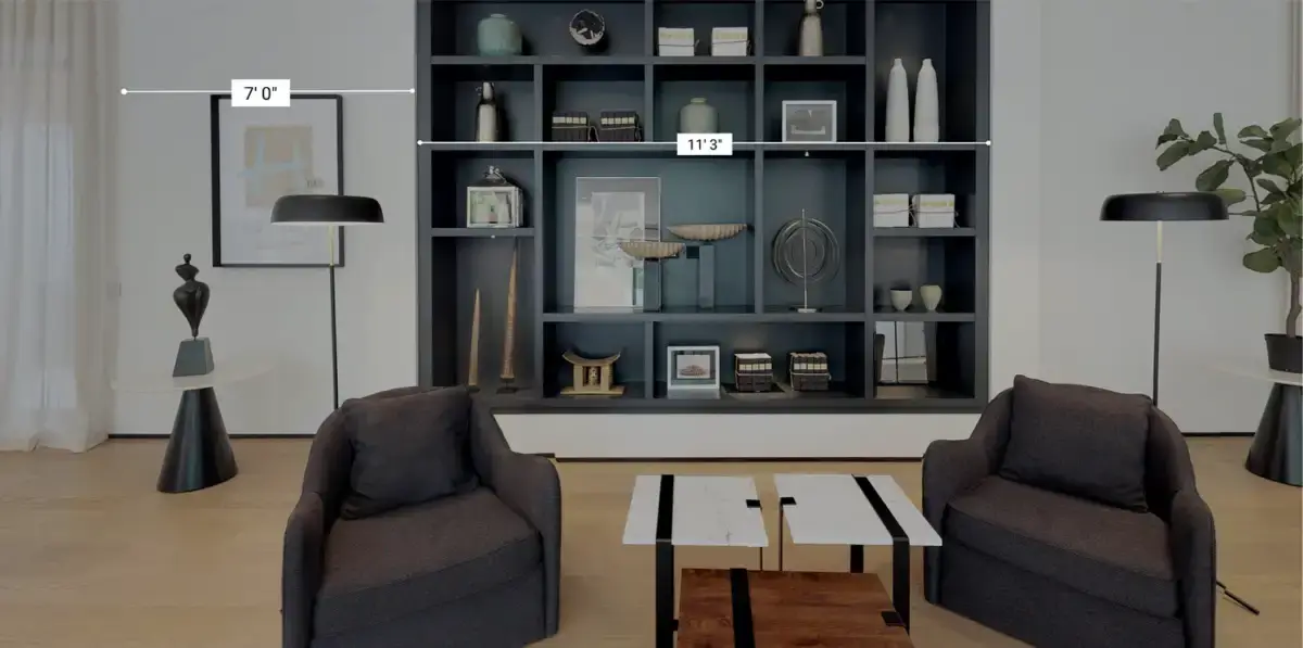 Maggiori dettagli dello spazio, con l’aggiunta di etichette virtuali in qualsiasi punto, come annotazioni, foto, video.